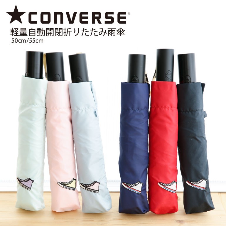 雨傘 レディース 自動開閉式 折りたたみ 55cm 無地 CONVERSE コンバース ブランド ワンポイント 軽量 軽い ワンタッチ 母の日 ギフト プレゼント シンプル