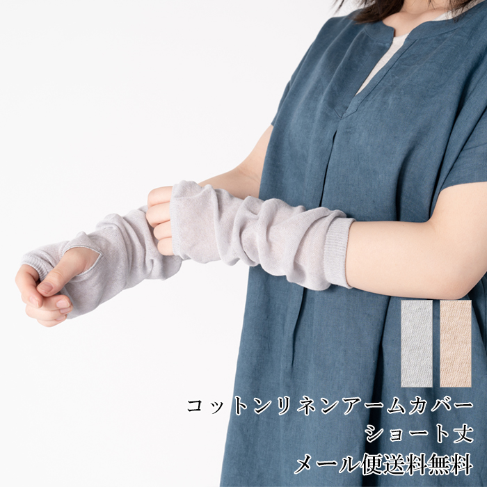 【送料無料】UVカット リネンコットン アームカバー 綿麻素材のさらさらアームカバー ショート丈 アームカバー 紫外線対策 男女兼用 レディース メンズ