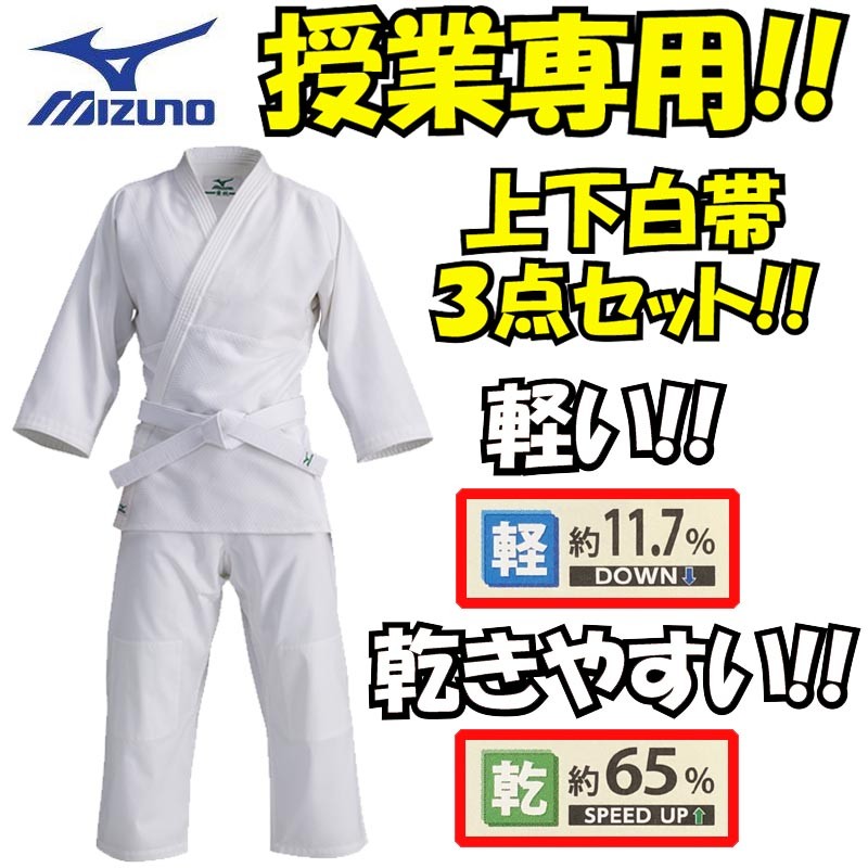 ミズノ 授業用柔道着<愛校> 上下白帯セット 3点セット