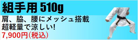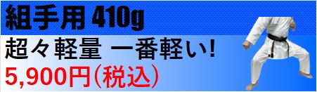 これは、新素材ポリエステル混紡の生地を使った空手着で、軽量薄手です。