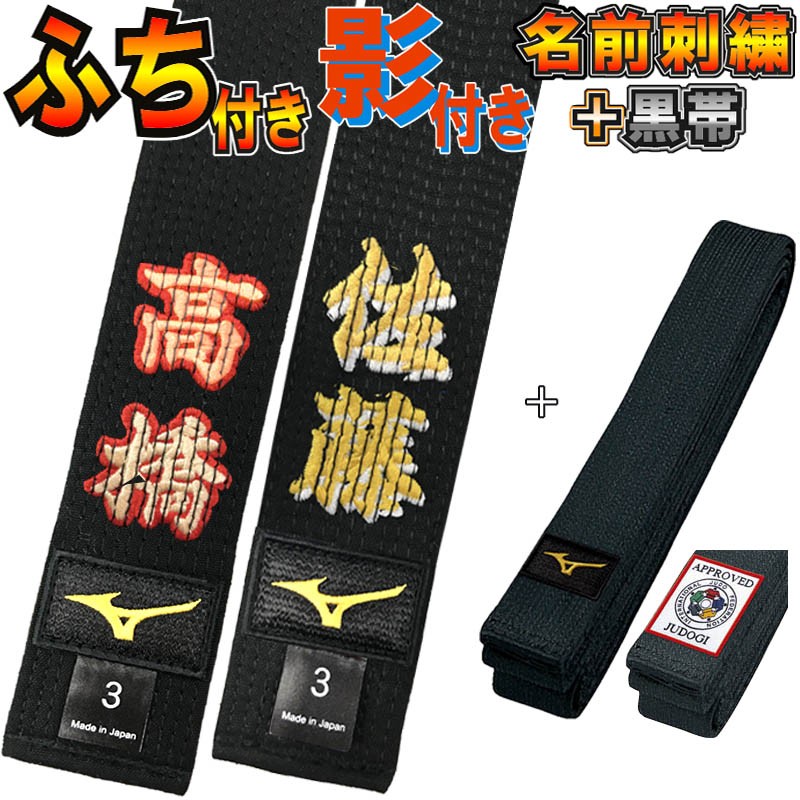 ふち付き文字・影付き文字刺繍付き 黒帯 ミズノ黒帯【22JV8A1009】平織生地帯 IJFマーク付き ※先入れ加工裏抜けなし