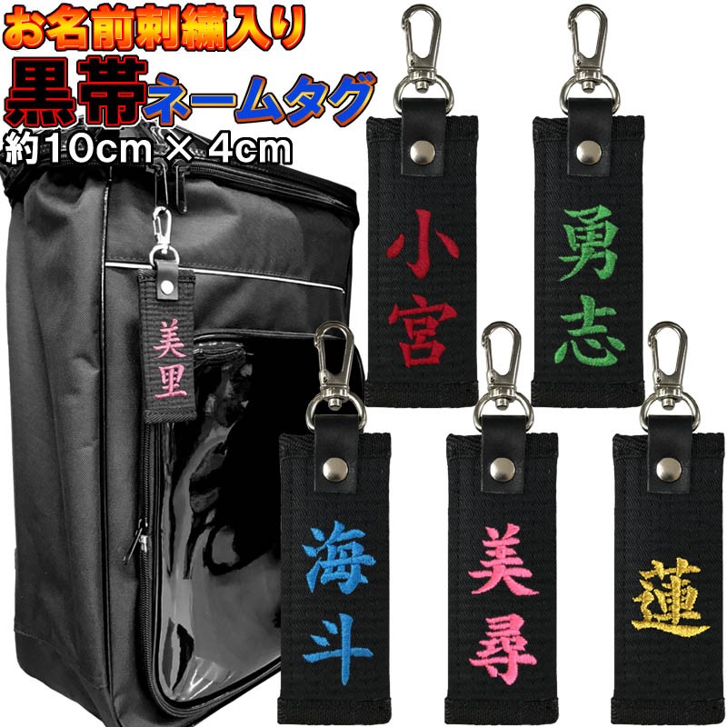 ついに登場!帯ネームタグ!お名前刺繍入り黒帯ネームタグ キーホルダー 長さ約10cm 柔道 空手