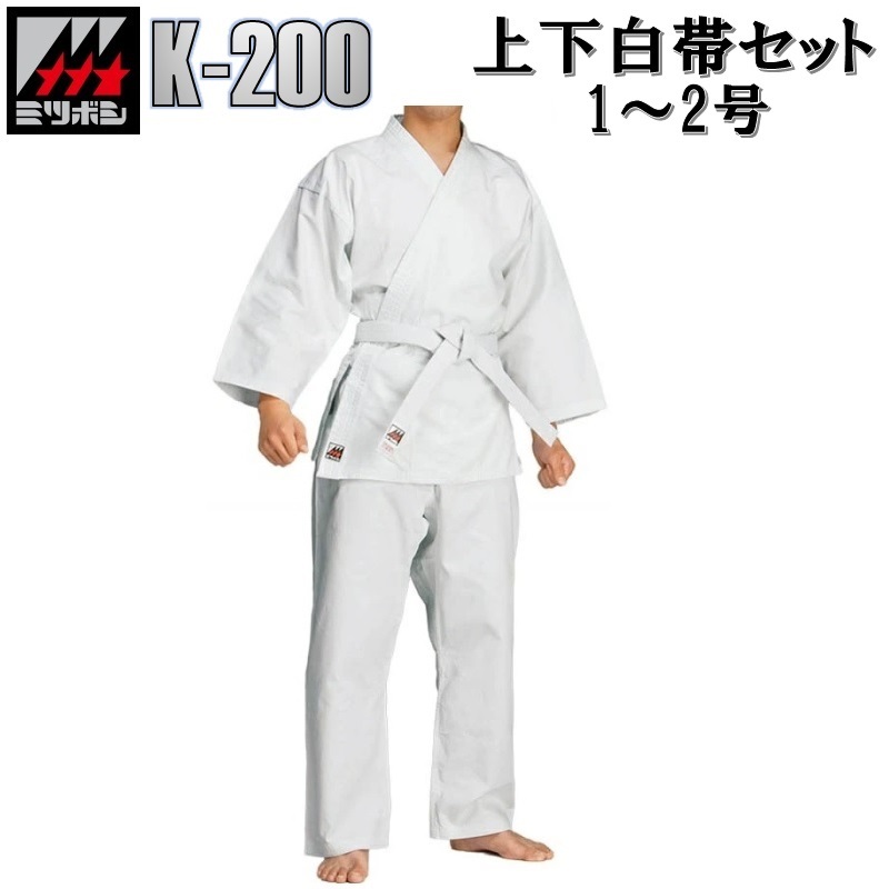 【サイズ交換送料無料】ミツボシ 空手着 空手衣 太綾 K-200 上下白帯セット 1号〜2号 set68