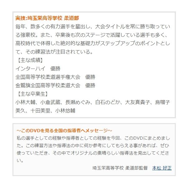 屈指の指導力を誇る本松好正が、必勝に導く基礎固めを伝授します。名門埼玉栄の名を不動のものにし、全日本女子ジュニアを強化するその指導極意は、原点を極め切ることにありました。
