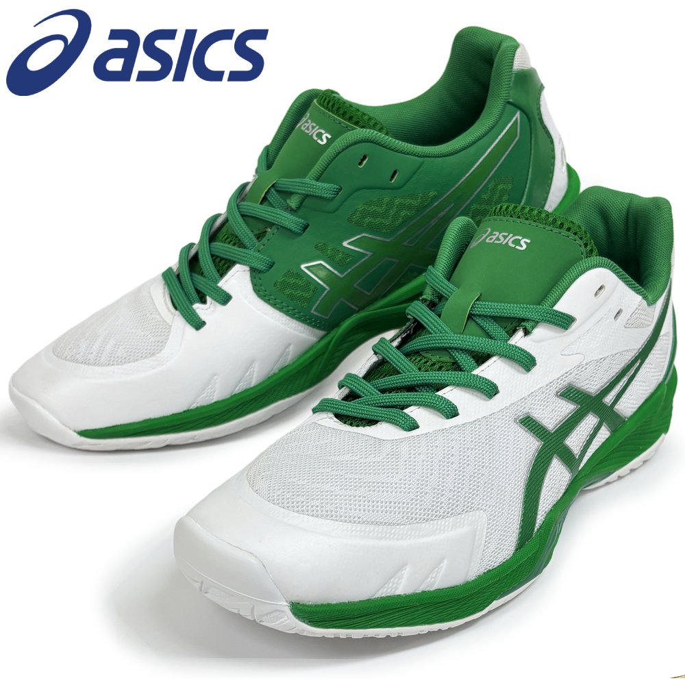 【サイズ交換送料無料】アシックス 2E 4E バレーボールシューズ V-SWIFT FF 3 SO オリジナルデザイン ローカット 紐タイプ 幅広 ワイド 甲高 白×緑×銀 VA17
