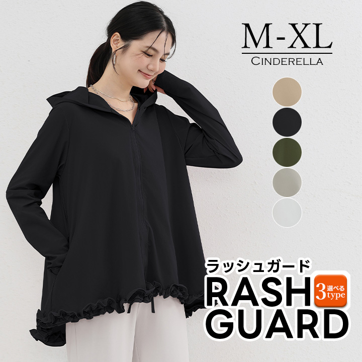 ラッシュガード レディース 紫外線対策 夏 春 UVカット 日焼け対策 ラッシュパーカー 涼しい フリル ギャザー 可愛い パーカー 指穴付き フィンガーホール付き フードあり ドルマンシルエット rt1305