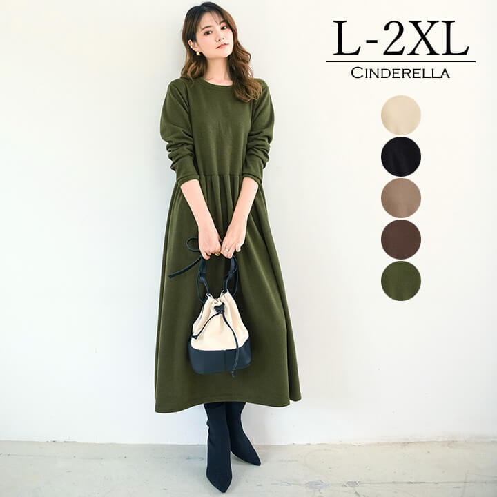 ソフトなカットソー生地を使用した秋冬ワンピース。