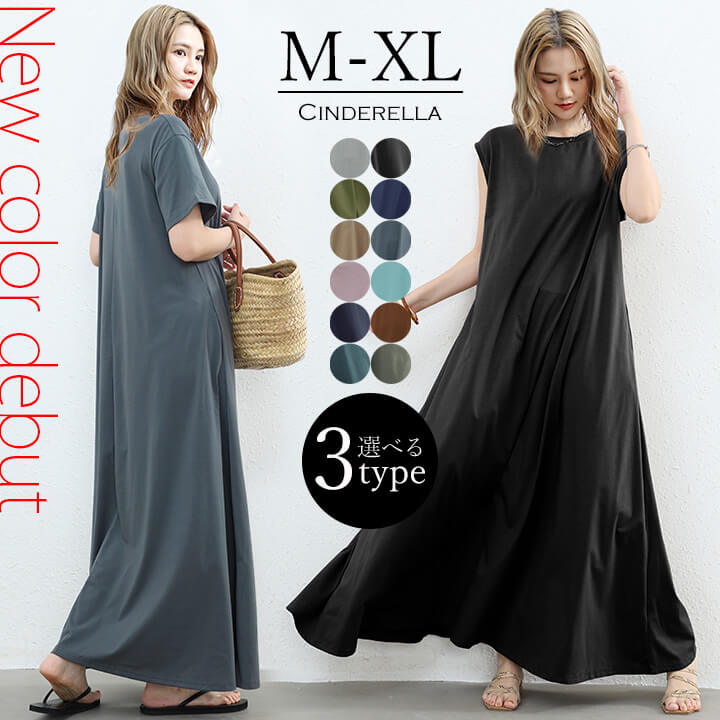 マキシワンピース ロンT ワンピース 春 夏 レディース Tシャツ 無地 シンプル フレンチスリーブ 半袖 フレア レディース 大人 50代 40代 ゆったり 春夏 rt3081