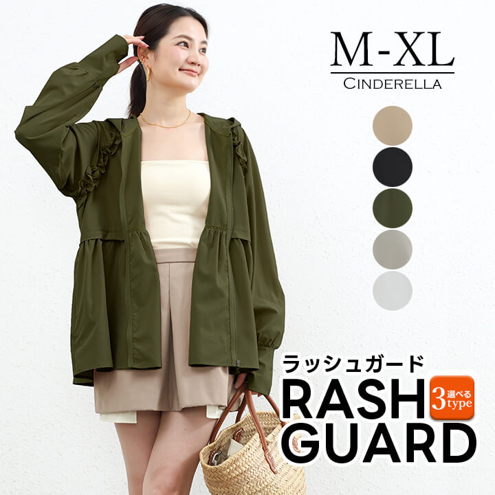 レディース ラッシュガード 夏 春 紫外線対策 UVカット 日焼け対策 ラッシュパーカー 涼しい フリル ギャザー 可愛い パーカー 指穴付き yc1306b