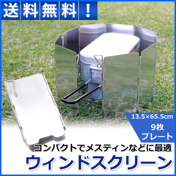 ウインドスクリーン 風防 風除け 防風板 キャンプ アウトドア プレート9枚 コンパクト メスティン 焚き火 バーベキュー コンロ バーナー 135mm×650mm