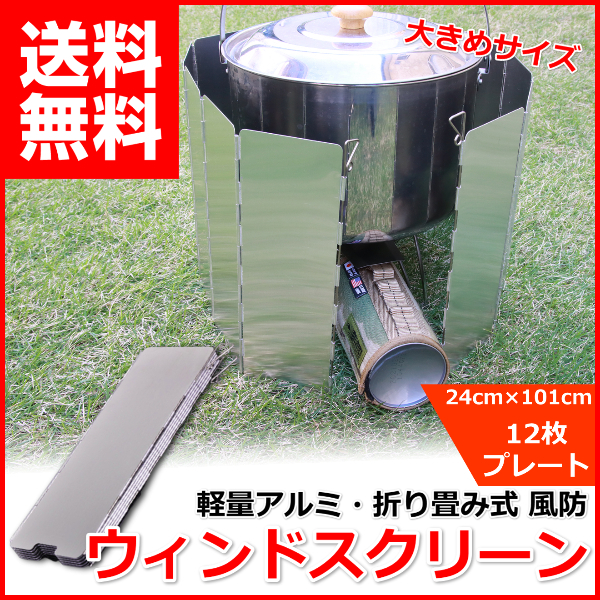ウインドスクリーン 風防 風除け 防風板 キャンプ アウトドア 12枚プレート コンパクト 焚き火 バーベキュー コンロ バーナー 24cm×101xcm