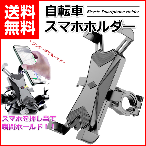 スマホホルダー 自転車 バイク用 スマホスタンド 携帯ホルダー スマホ 6.7インチまで対応 iPhone Android 自動 ロック 縦横 角度調整 自由自在