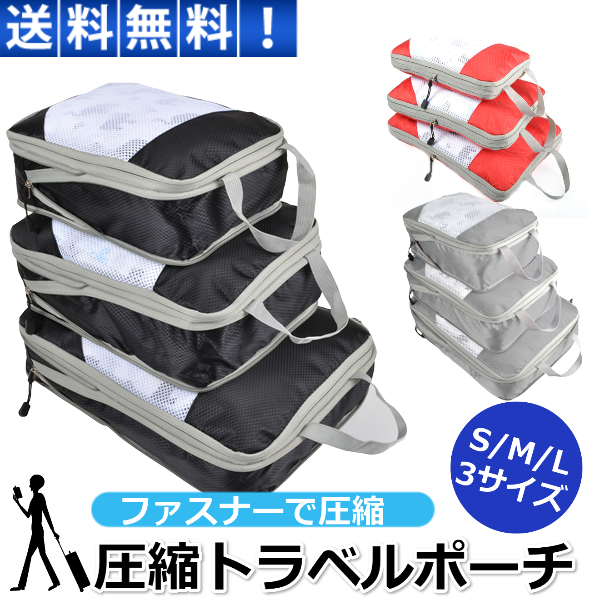 トラベルポーチ 圧縮 バッグ S / M / L 3サイズ トラベルバッグ ファスナー 圧縮袋 簡単 全8色 旅行圧縮収納バッグ スペース節約 収納 便利グッズ 衣類