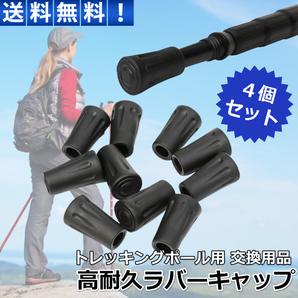 トレッキングポール ラバーキャップ ゴム 4個セット 先端 石突 汎用 交換用キャップ 登山 ハイキング ストック ステッキ 杖 プロテクター