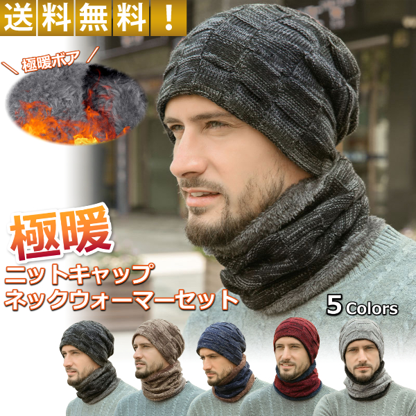 ニット帽+ネックウォーマー 2点セット