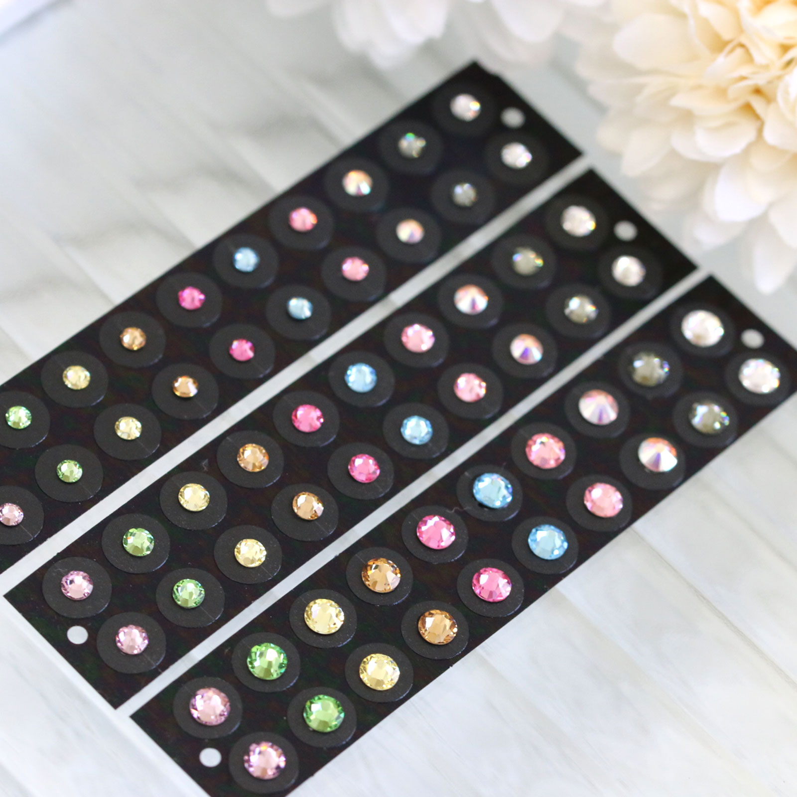 ストーンサイズ:SS9(約2.6mm)、SS12(約3mm)、SS16(約4mm)