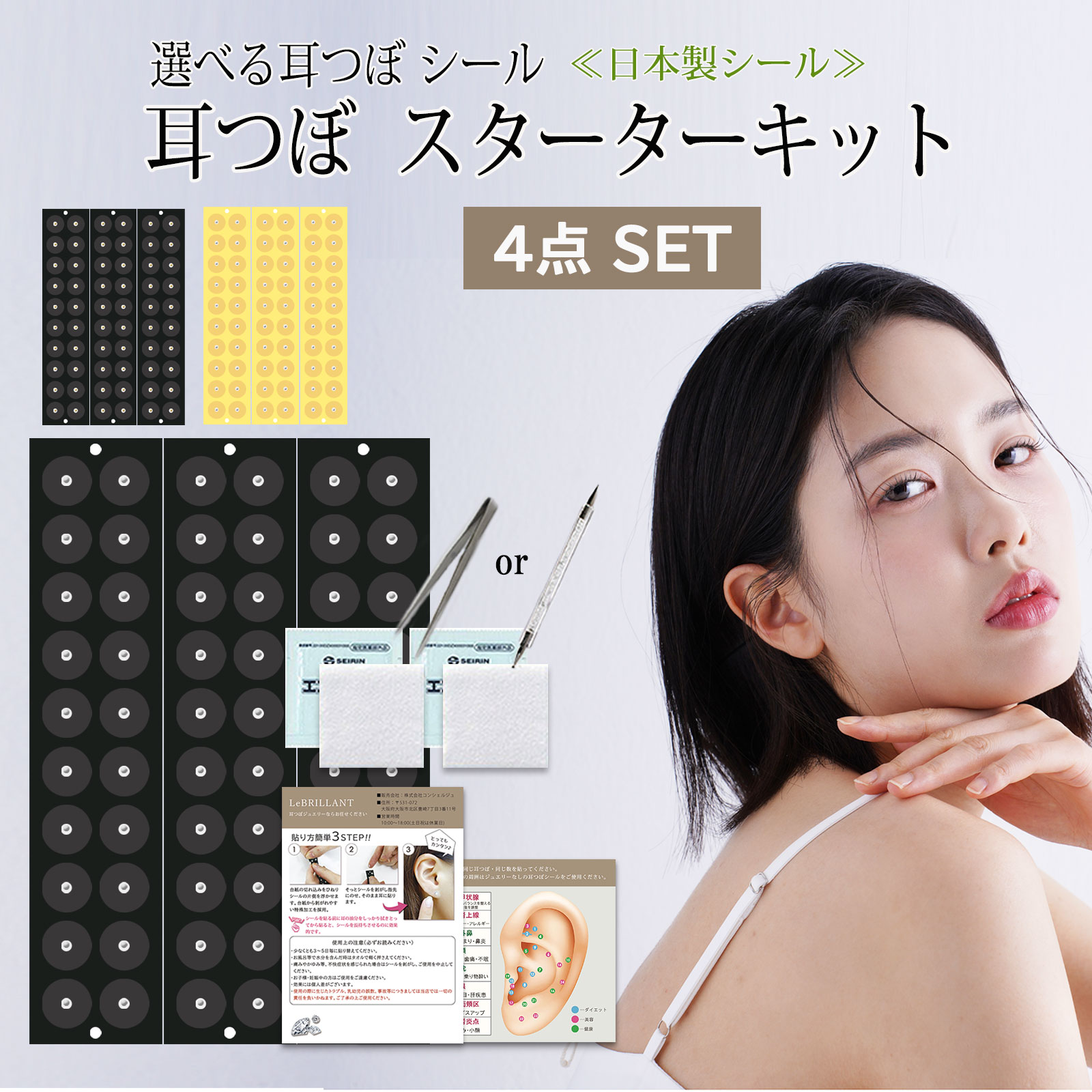 耳つぼ スターターキット 4点セット 初心者で安心解説図付 耳つぼシール つぼ押し ピンセット 耳ツボ お試し チタン粒 金粒