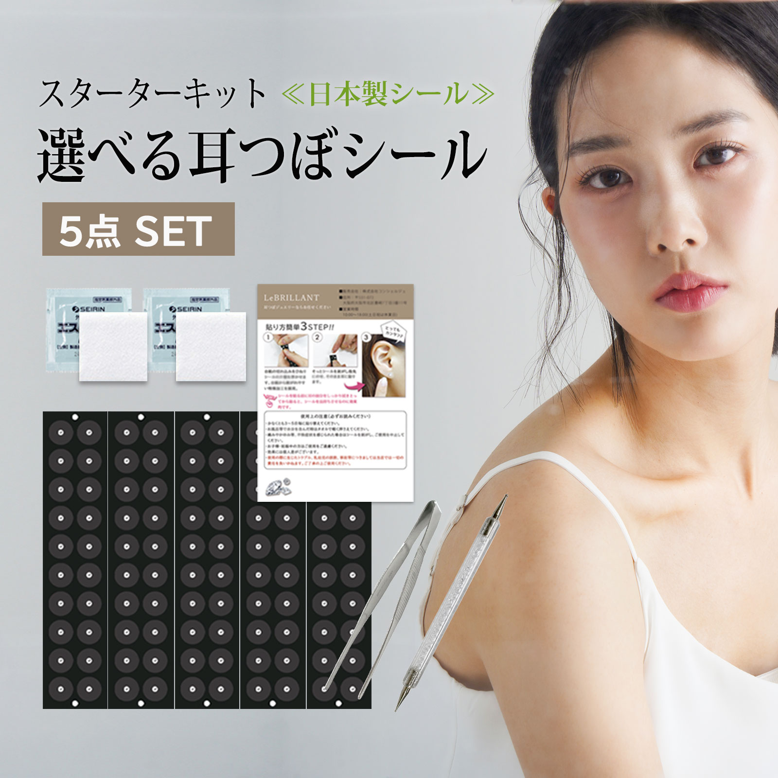 耳つぼ スターターキット 5点セット 初心者で安心解説図付 耳つぼシール 耳ツボシール お試し チタン粒 金粒 肌色チタン粒 スターターセット ダイエットシール