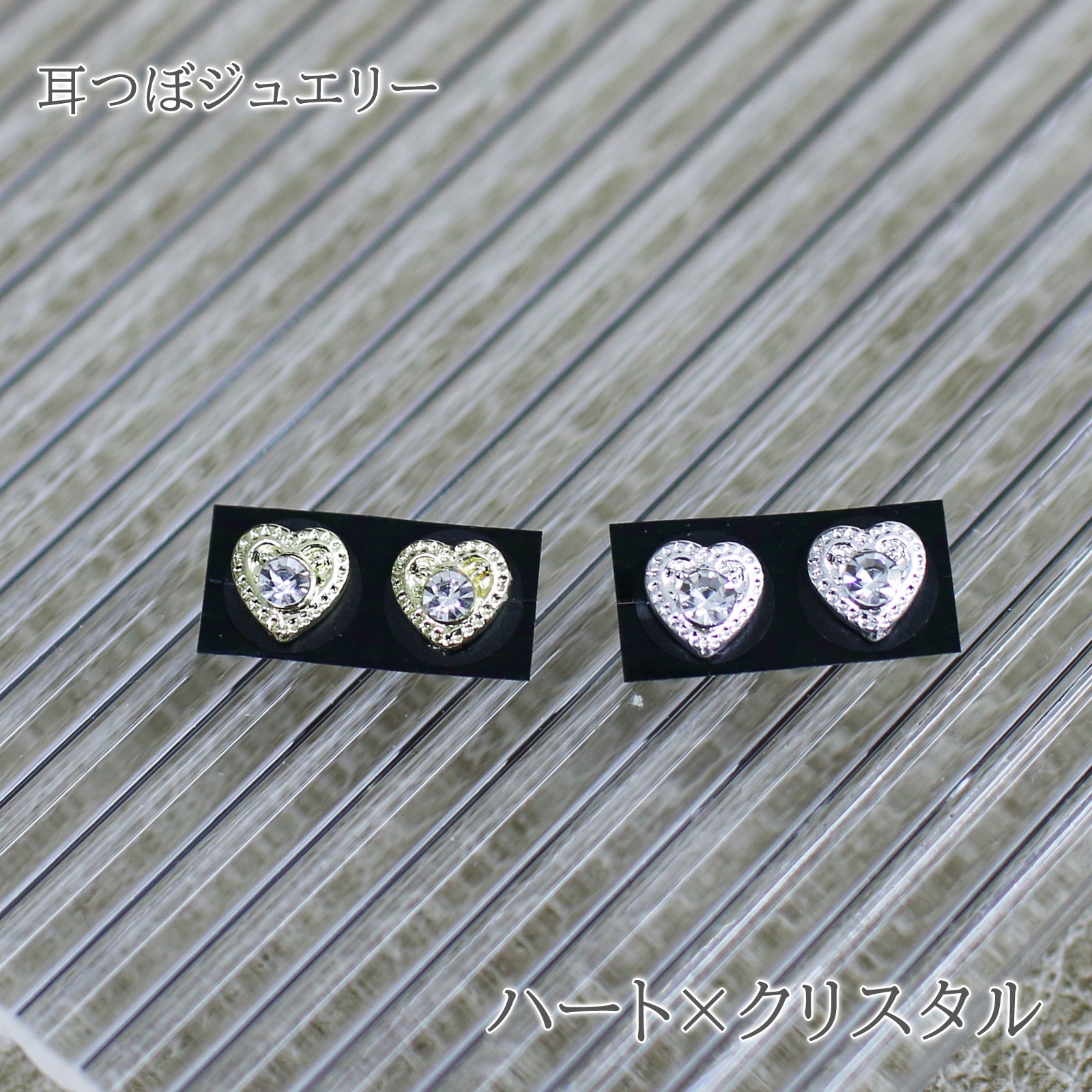 NEW★耳つぼジュエリー ハートクリスタル プチ2粒 シルバー ゴールド キュート かわいい 上品 デザインストーン チタン粒 金粒 耳ツボジュエリー