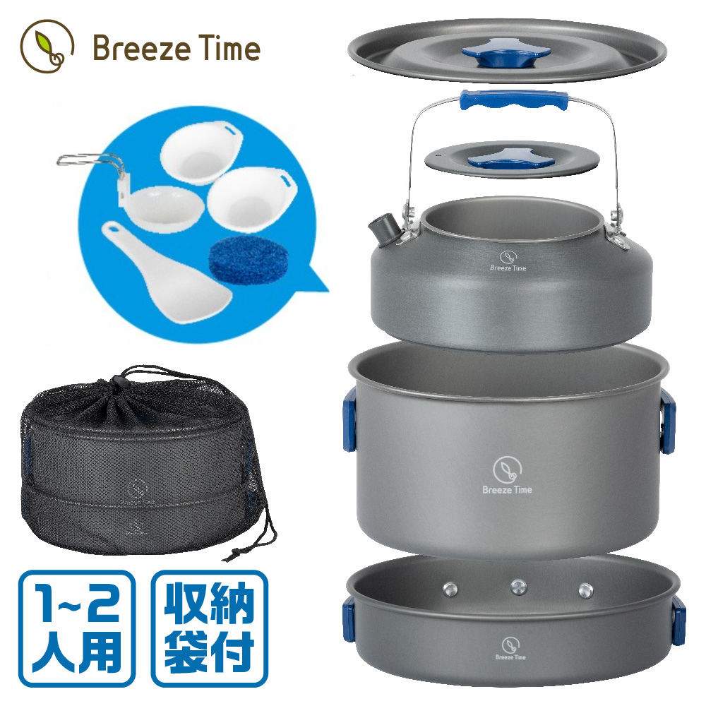 鍋、フライパン、ケトル、ミニ しゃもじ、お玉、お茶碗(2個)、たわし、収納袋
