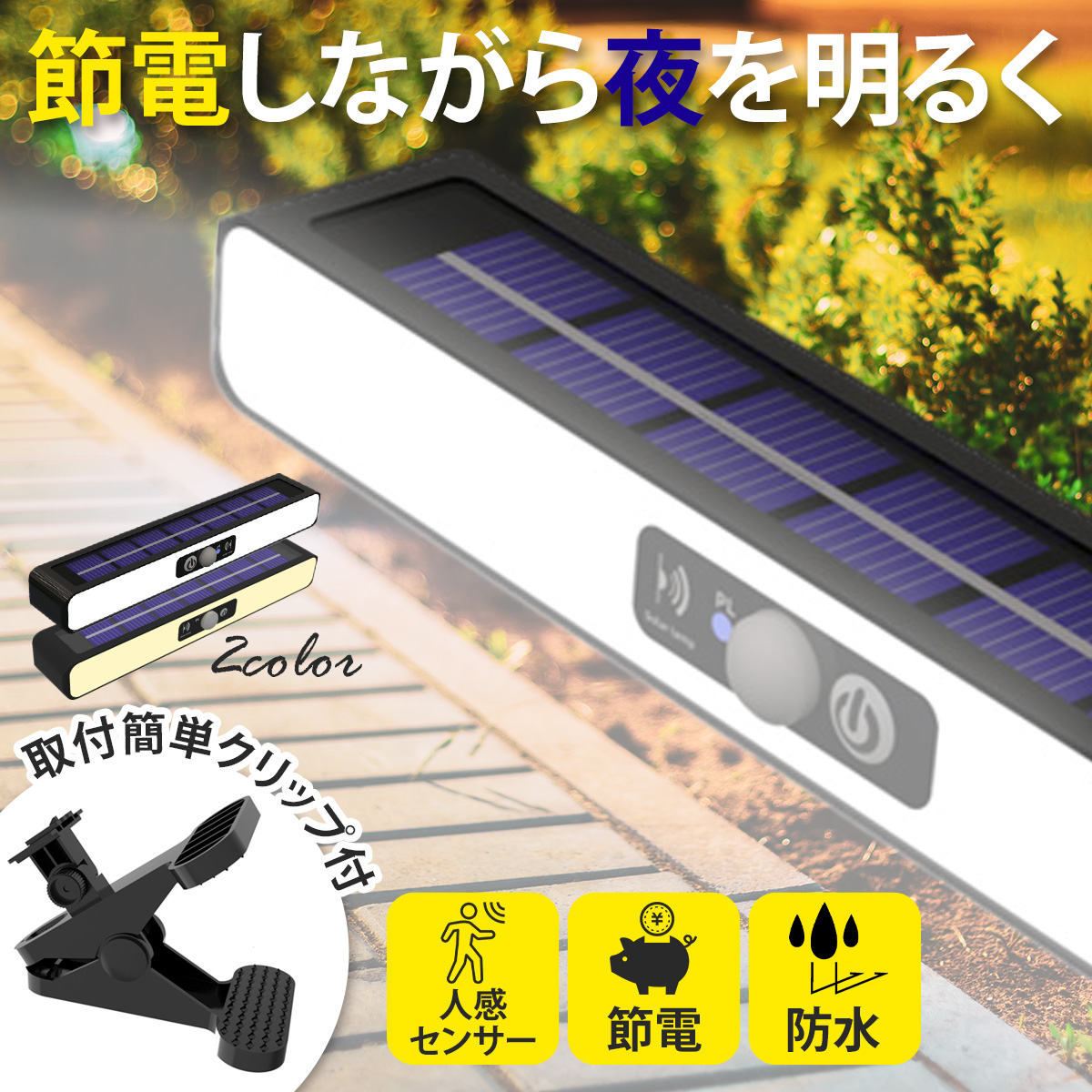 ソーラーライト センサーライト クリップ式 屋外照明 ガーデン 屋外 led 人感 防水 充電式 明るい 壁掛け 防犯灯 室内 明暗センサー