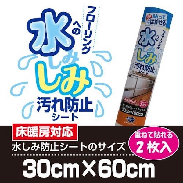 フローリングの水汚れ対策に、水しみ防止シートを貼っておきましょう。