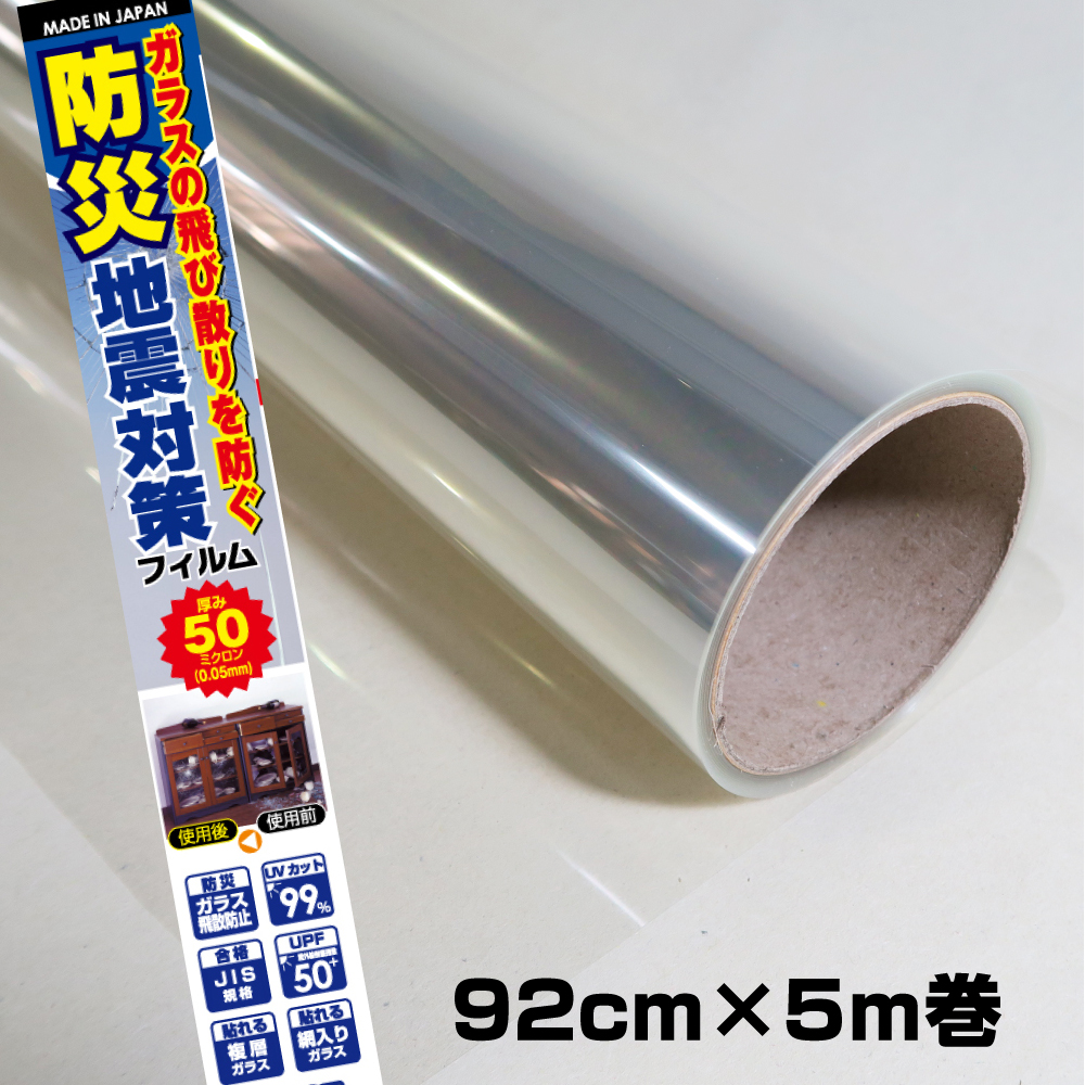 50μ(0.05mm)の一般的な厚みの防災フィルムです。
