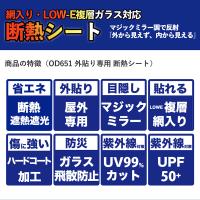 屋外貼り専用です。屋内側から貼ると熱割れする危険性がありますので、屋内側には貼らないでください。
