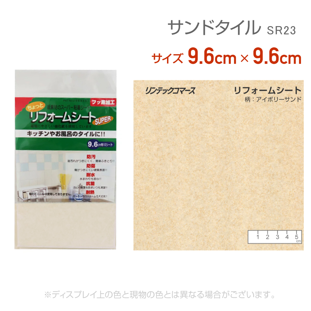 リンテックコマース SR23 リフォームシート 9.6cm×9.6cm サンドアイボリータイル 水回り リメイク シール 砂目 抗菌