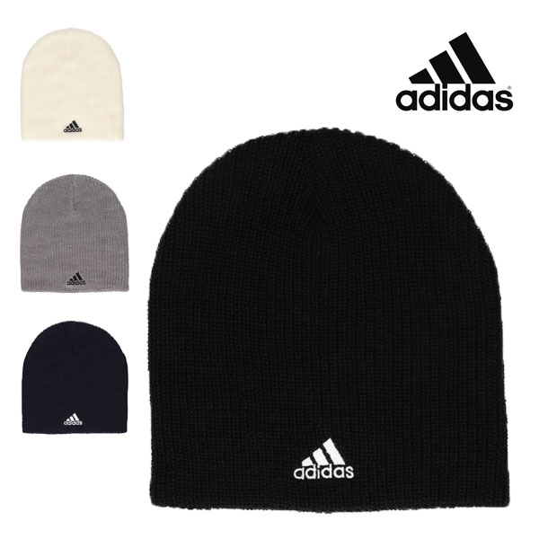 アディダス adidas アクリル ビーニー ニット帽 黒 グレー 白 紺
