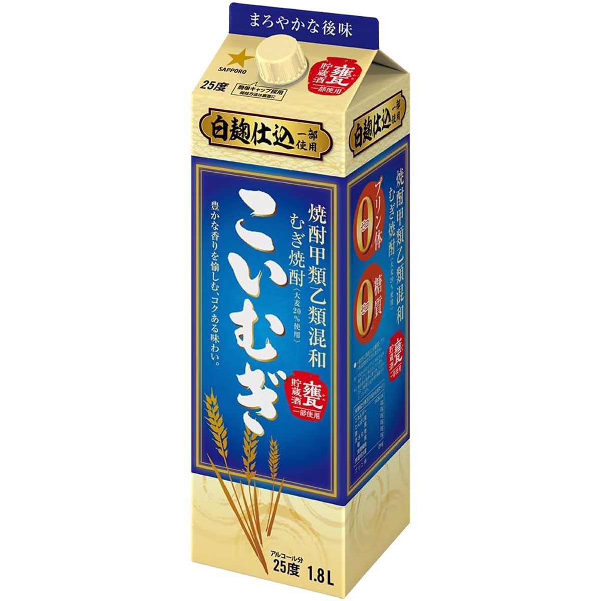 あすつく サッポロ 甲乙混和麦焼酎 こいむぎ 麦 25度 1800ml 1.8L 1本