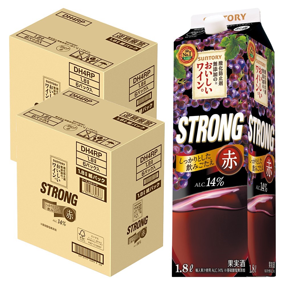 あすつく 送料無料 サントリー酸化防止剤無添加のおいしいワイン ストロング赤 紙パック 1800ml 1.8L×2ケース/12本 wine