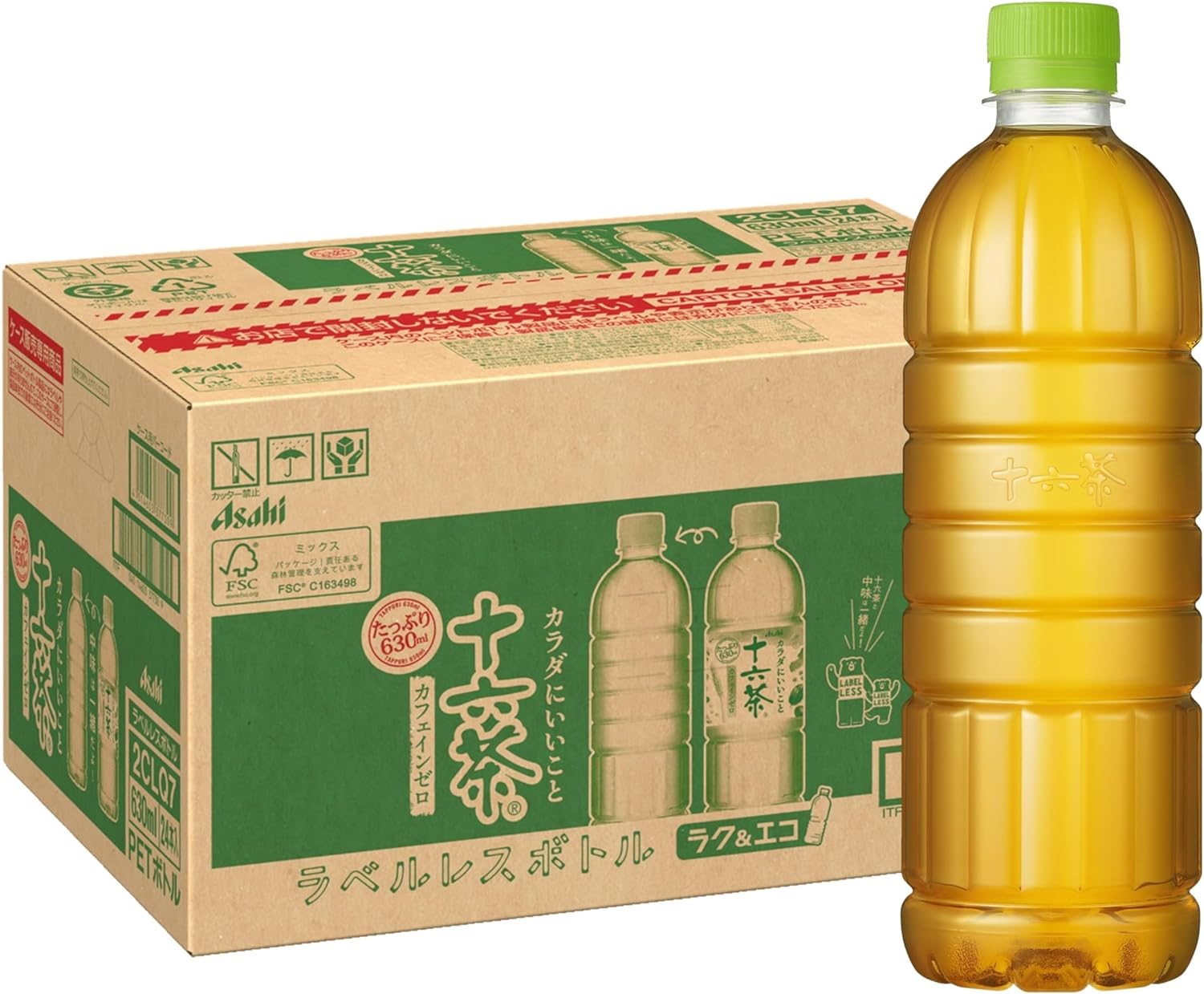 あすつく 送料無料 アサヒ飲料 十六茶 ラベルレスボトル PET 630ml×1ケース/24本