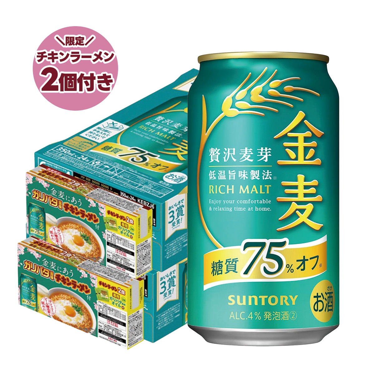 予約 2026/02/03発売商品 チキンラーメン2個付き 送料無料 サントリー 金麦 糖質75%オフ 350ml 2ケース/48本