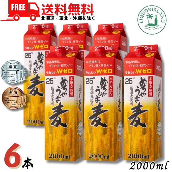 めちゃうま麦 25度 2L パック 1ケース 6本 2000ml 麦焼酎 鷹正宗 送料無料 (佐川急便限定)