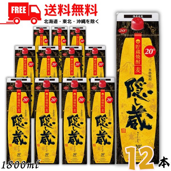 隠し蔵 焼酎 20度 1.8L パック 2ケース 12本 1800ml 麦焼酎 濱田酒造 送料無料 (佐川急便限定)