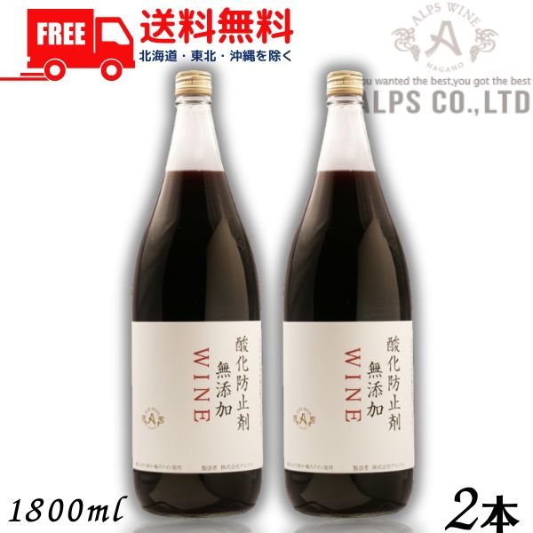 信州ワイン 酸化防止剤 無添加 WINE 赤 1.8L 瓶 2本 1800ml アルプス 送料無料