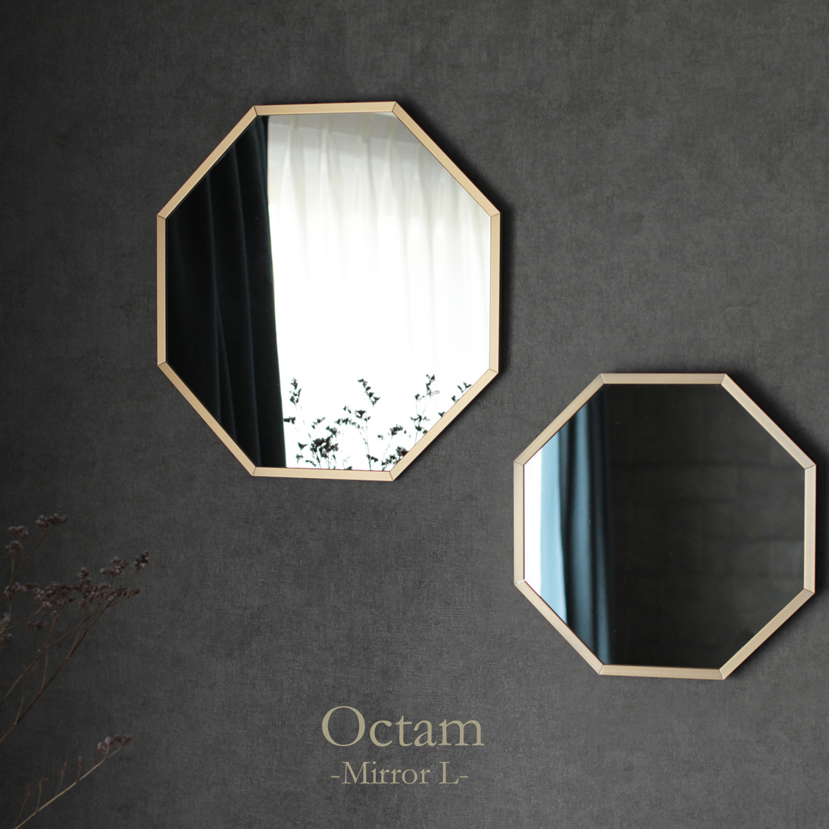 ミラー 37cm×37cm 壁掛け 八角形 ゴールド ウォールミラー おしゃれ 大きい リビング 玄関 新生活 日本製 軽量 鏡 Lサイズ Octam