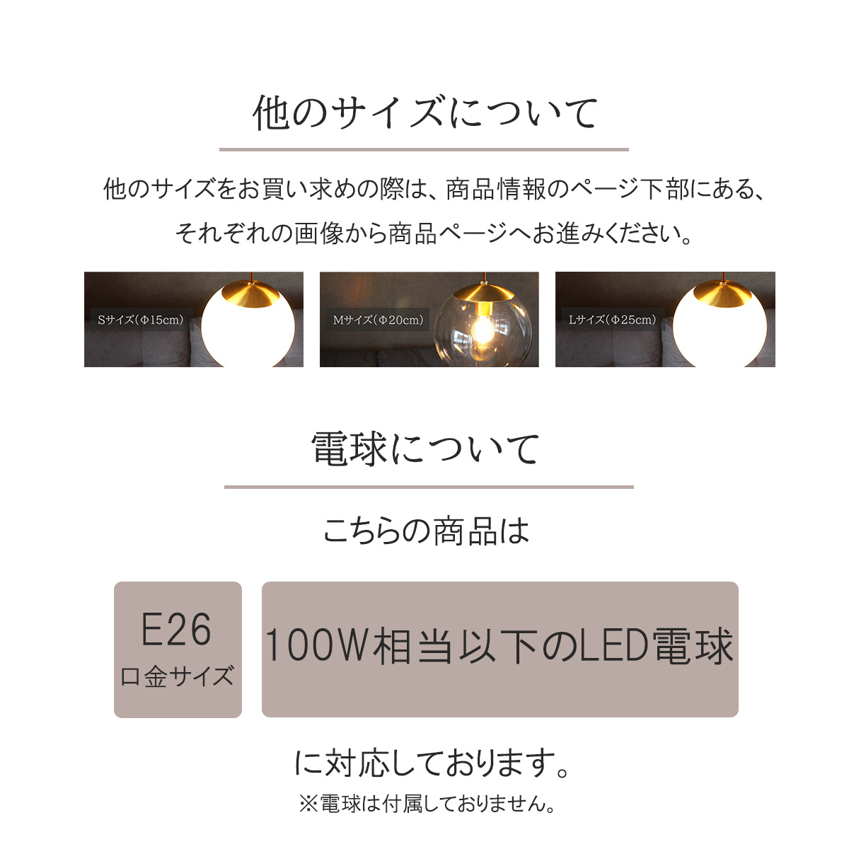 口金:E26/100W相当以下のLED電球をお買い求めください。