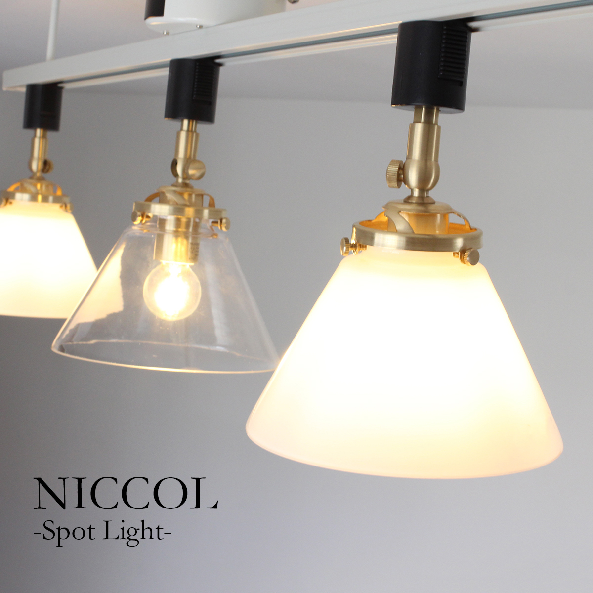 スポットライト 間接照明 ハンドメイド おしゃれ ガラス 北欧 LED モダン スポット ダクトレール用 キッチン カウンター ダイニング リビング 真鍮 NICCOL Spot