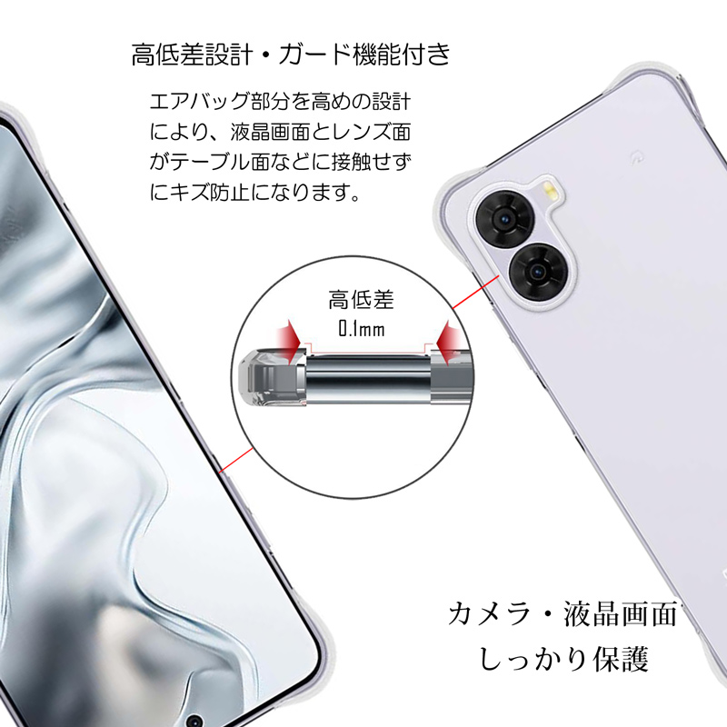・エアバッグ部分を高めの設計により、液晶画面とレンズがテーブル面などに接触せずにキズ防止になります。