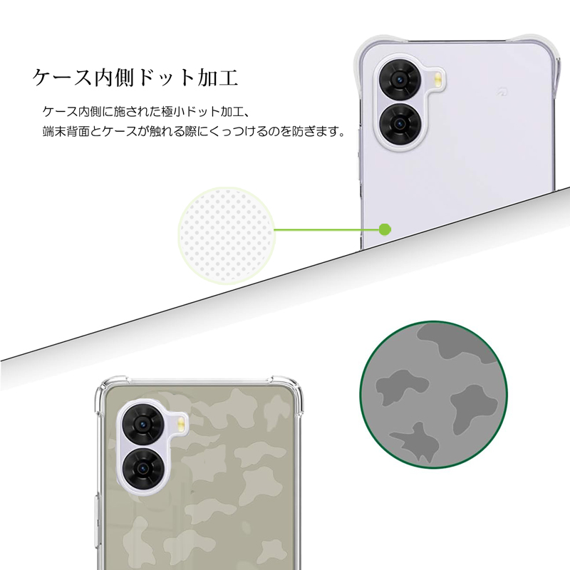 ・ケース内側に施された極小ドット加工、端末背面とケースが触れる際にくっつけるのを防ぎます。
