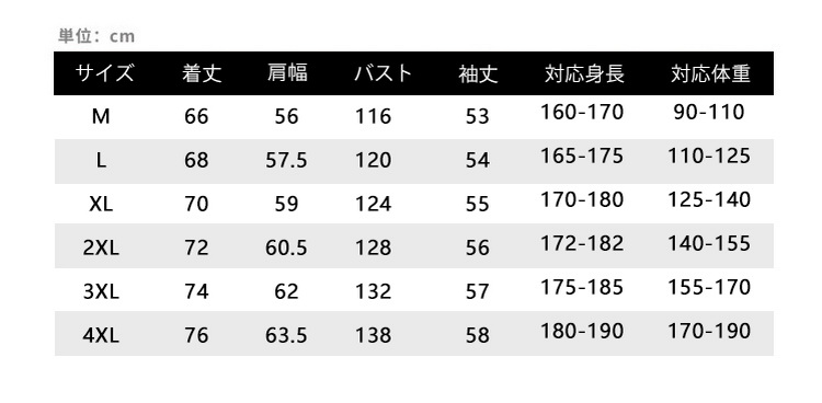 サイズ M L XL 2XL 3XL 4XL