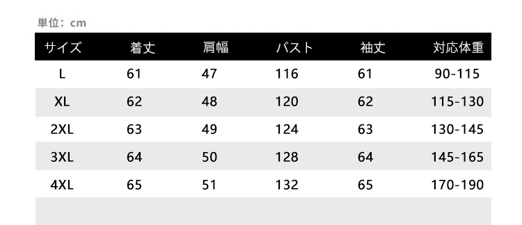 サイズ L XL 2XL 3XL 4XL