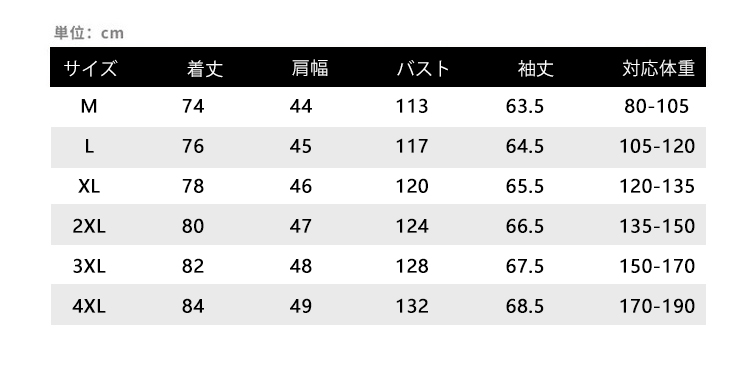 サイズ M L XL 2XL 3XL 4XL