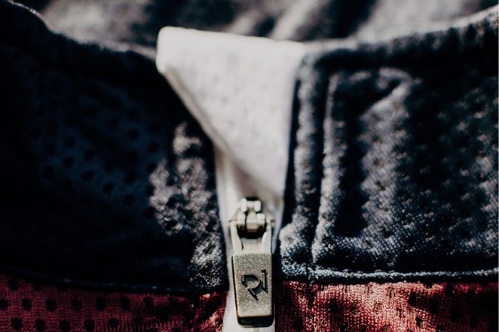 ・フルジッパー、上部にはスクラッチ防止のチンガード。