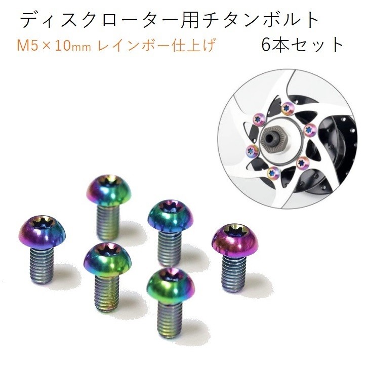 ディスクブレーキ用チタンボルト 6本セット M5×10mm 美しいレインボー仕上げ 軽量 TC4(64チタン) チタン合金 高耐久 自転車 ロードバイク クロスバイク マウンテンバイク MTB ディスクブレーキ ディスクローター ブレーキローター チタンボルト