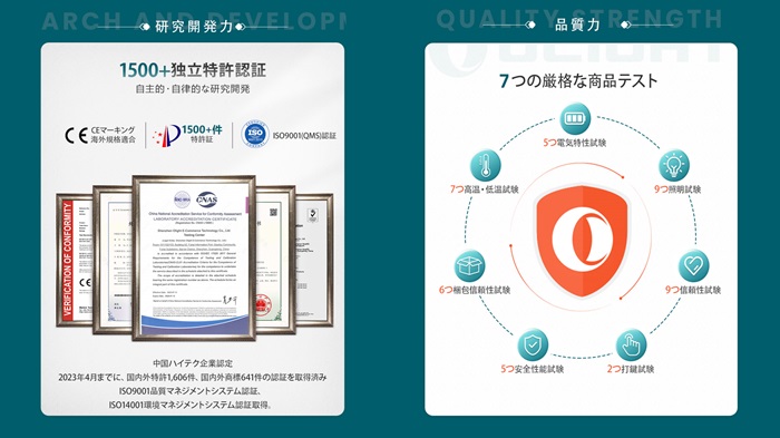・ハイパワーLEDを2個搭載、照射距離は最大約170メートル。