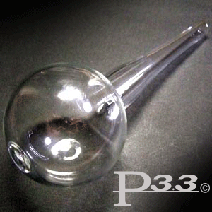 当店オリジナルのヴェポライザー/電球型パイレックスP3.3製ガラスパイプ(熱膨張係数を3.3に安定させています)。フルガラスなので、ゴム臭さなど一切ない優れものです!!上質なガラスP3.3のロゴ入りで球体がかなり大きいので沢山の煙を溜めることができるので、安心です。ガラスの外側からライターであぶるので、有効成分だけを吸引することができる超便利なガラスパイプです。ご使用方法は、球体先の穴の部分を指で押さえながら、ガラスの外側からライターであぶる形です。