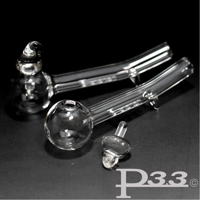 ご要望が多かったパイレックスP3.3製ガラスパイプシリーズのフタ&脚付のクラックパイプです。当店オリジナルのパイレックスP3.3製ガラスパイプは熱膨張係数を3.3に安定させた耐熱、衝撃に強い上質なガラスパイプです。フタがついているので、煙を逃がしづらいので、ゆっくり煙を楽しめます。フタをしたまま炙ればヴェポライザーとしても機能します。通常のクラックパイプを使っていて、テーブルなどに置いた際、コロコロ転がって煩わしい思いをしたことはないでしょうか?この商品は脚付なのでテーブルなどに転がらずに置くことが可能です。脚を画像のように炙る球体ではなく、ガラス管側につけることで、置いた時の安定性はもちろん、球体の耐久性などを追求しました。また、吸い口部分を画像のように少し上向きにすることで、置いた時に吸い口がテーブルにつかないよう衛生面にも優れた高い機能製を備えたガラスパイプです。サイズはタバコの箱に入るサイズ感なので、持ち運びにも便利な優れもののクラックパイプです。クラックパイプはハッカパイプやガラパイとも言われています。*タバコの箱によっては入らない場合がございますので、ご利用のタバコに入るかはサイズよりご確認ください。